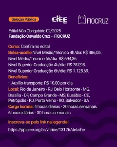 CIEE Rio divulga Programa de Estágio Fundação Oswaldo Cruz