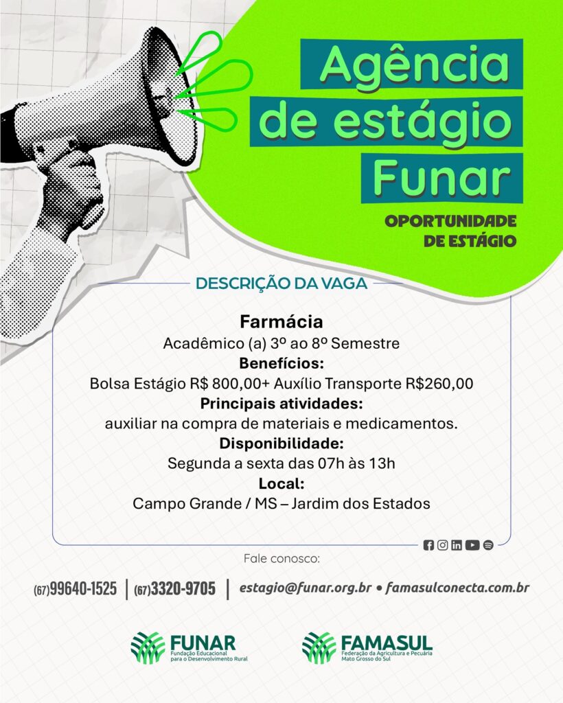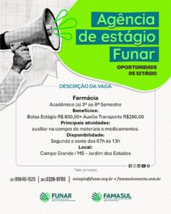 Contato: (67) 9 9640-1525 / estagio@funar.org.br