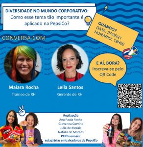 Inscreva-se no bate papo “Diversidade no mundo corporativo: Como esse tema tão importante é aplicado na PepsiCo?” até o dia 27/05 às 17h pelo link: https://forms.office.com/r/0Wg1KDKmEy