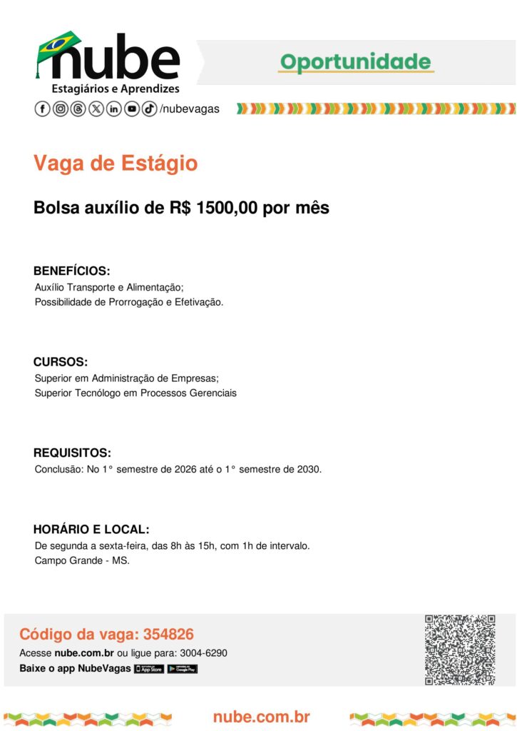 Vaga de Estágio para estudantes de Administração e de Processos Gerenciais
