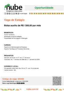 Vagas de Estágio para estudantes de Administração e Processos Gerenciais